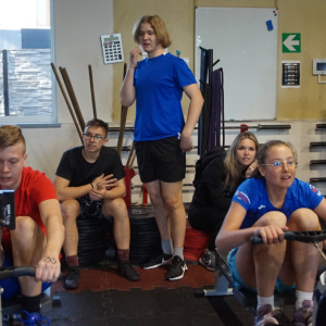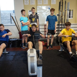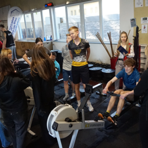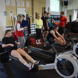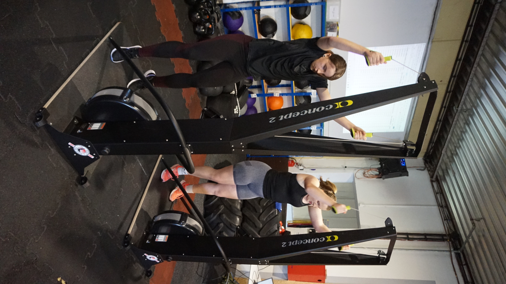 - 1km veslování na trenažéru,