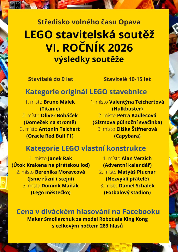 Ještě jednou děkujeme všem Lego stavitelům za jejich nadšení a gratulujeme oceněným!